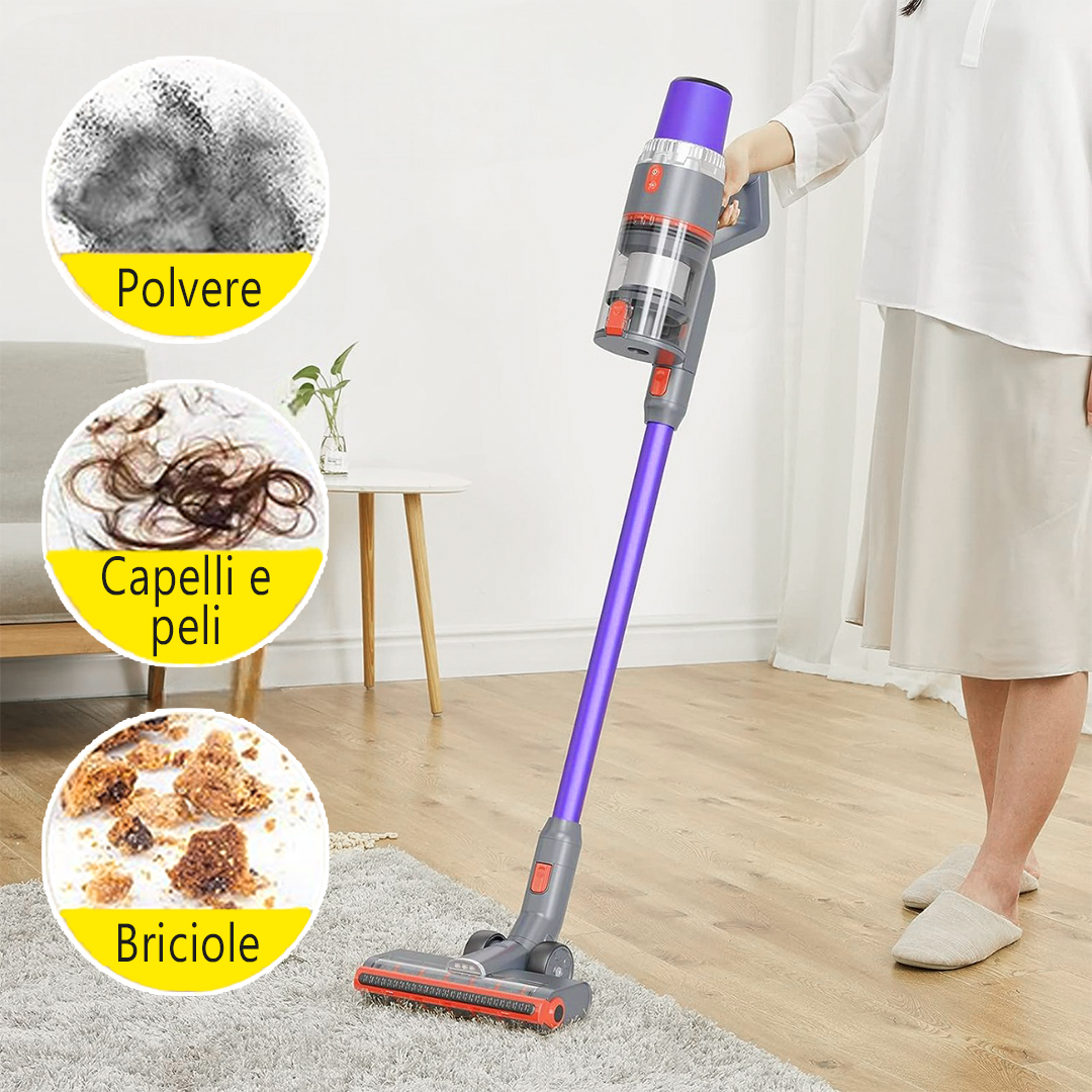 Risparmia tempo e fatica con EasyAspira. Il nuovo aspirapolvere senza fili che pulisce tutte le superfici in una passata.